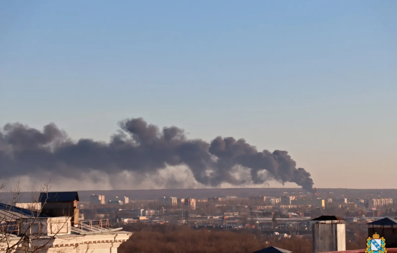 В Сети появилось видео горящего нефтенакопителя, расположенного на военном аэродроме под Курском.
