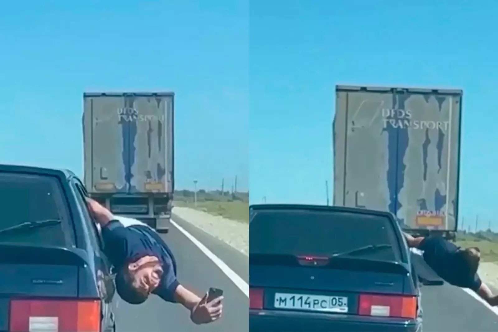 В Дагестане мужчина на ходу вылез из машины, чтобы сделать экстремальное селфи.