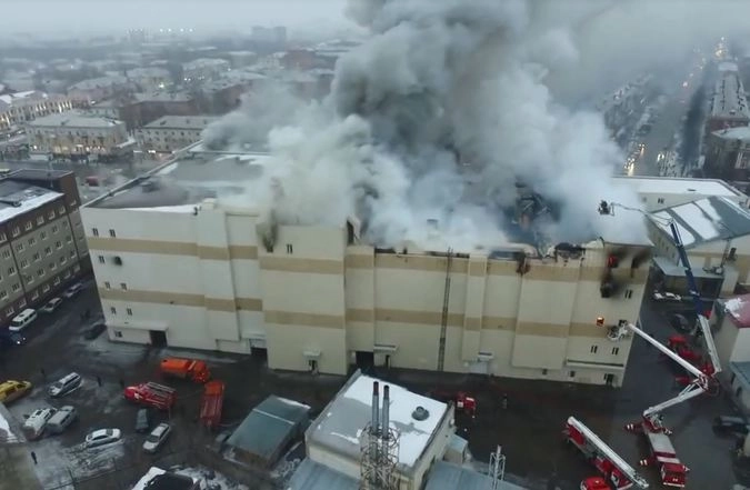 Пожар в кемеровском ТЦ сняли с квадрокоптера