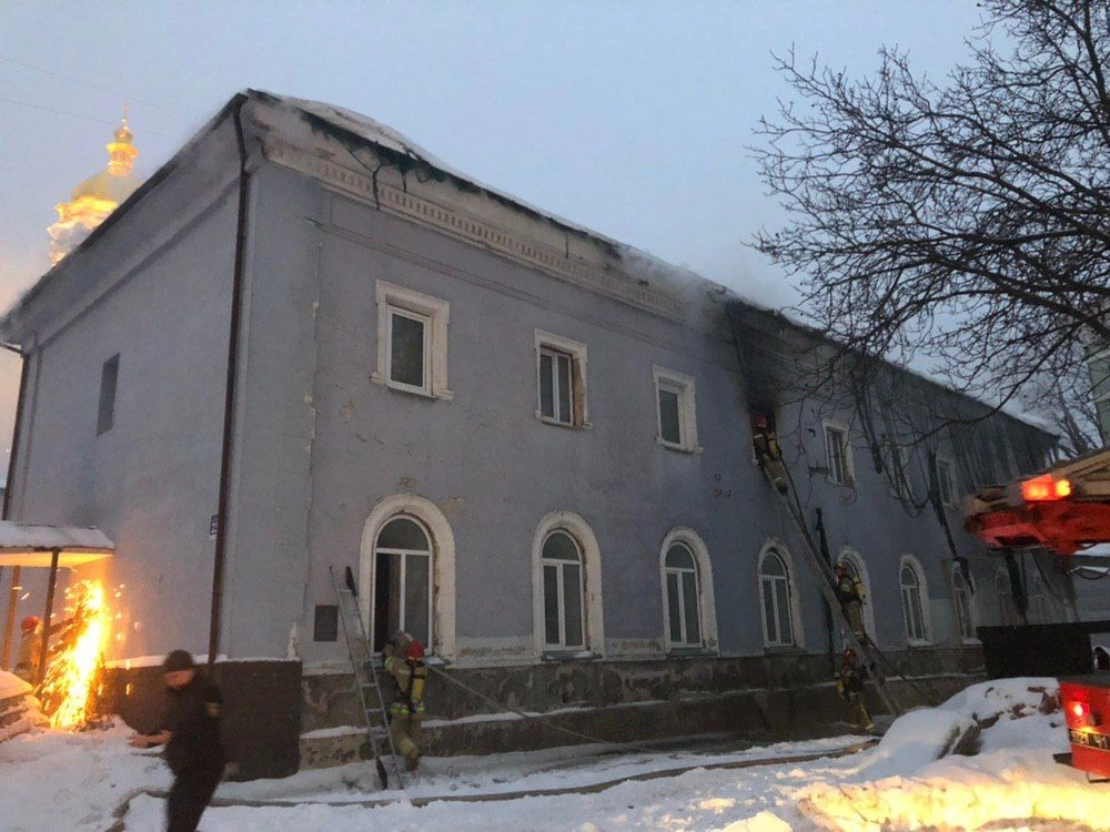 В отдельном двухэтажном здании, расположенном на территории Киево-Печерской лавры, возник пожар.