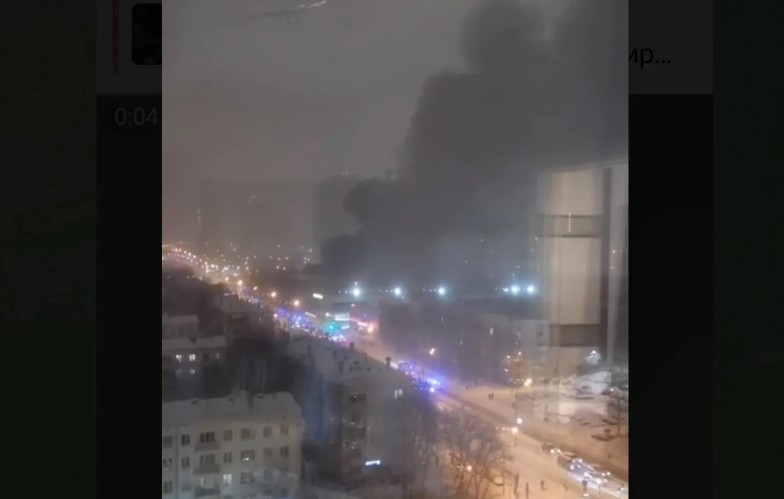 Сообщается, что в горящем здании завода слышны хлопки и произошли обрушения.