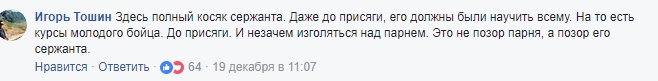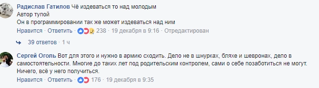 Чувак этот отслужит, станет нормальным программистом и будет зарабатывать хорошие деньги… Способ продевания ремня в бляху ему в реальной жизни будет не нужен. А офицер так и останется смело чморящим молодежь из другого поколения. Офицер будет еще долго гордиться навыками глажки портянок и прочими „полезными“, но немонетизирумыми в серьезной жизни знаниями — шевроны, лычки, шнурки и бляхи и прочая игра в солдатиков,раскритиковали поведение военнослужащего в Сети.