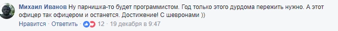 Затем выяснилось, что призванный в армию не знает, что такое шевроны. После этого он рассказал, что «на гражданке» учился на программиста.