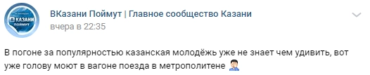 Жители Казани обсуждают в социальных сетях необычный случай, произошедший в вагоне городского метрополитена. 9 декабря в районе станции «Горки», едва не упав на пол, в вагон влетел молодой парень со словами «Чуть не опоздал» и начал совершать утренний туалет.