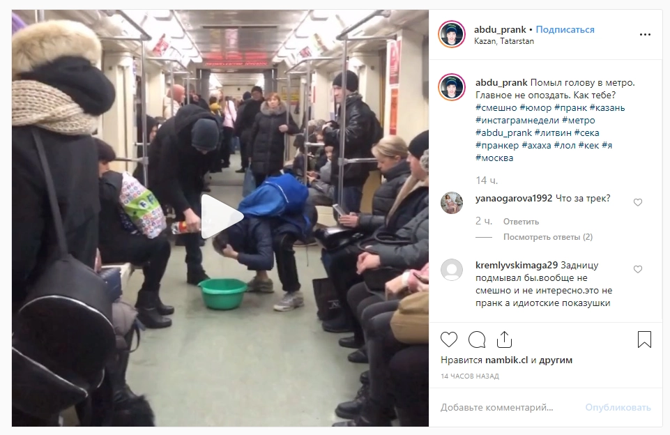 Впрочем, первоисточник показал, что утренний туалет в метро был все же розыгрышем пранкера. Так что, возможно, его критики оказались не так уж и неправы.