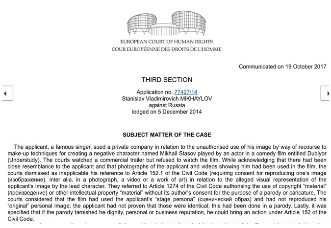 Артист пытался отсудить у создателей фильма 10 миллионов рублей еще в 2013 году. Год спустя он обратился в Европейский суд, который коммуницировал жалобу лишь на днях.