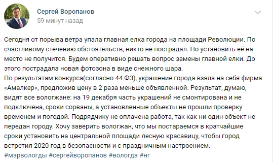 «Празднику каюк!»: в Вологде с юмором отнеслись к падению главной елки