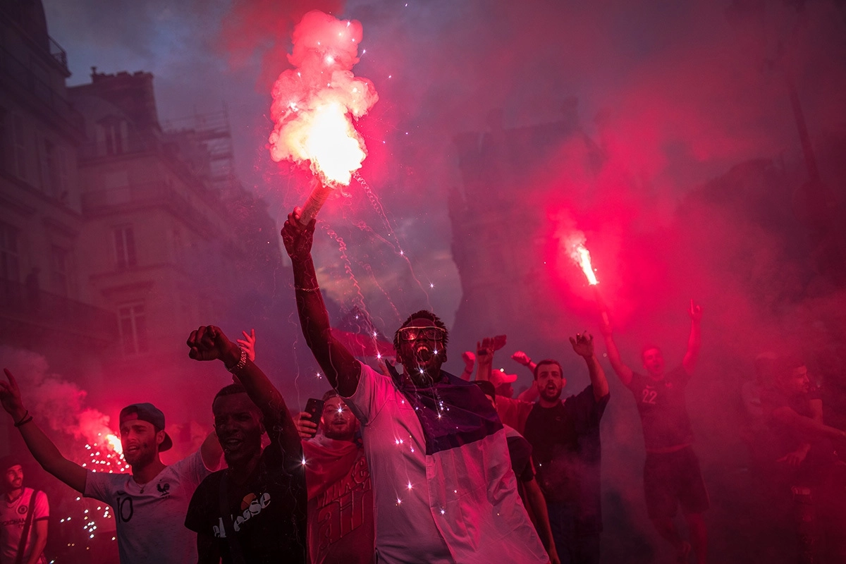 По данным издания, сразу после завершения финального матча Франция — Хорватия, закончившегося со счетом 4:2, сотни тысяч людей высыпали на улицы французских городов.