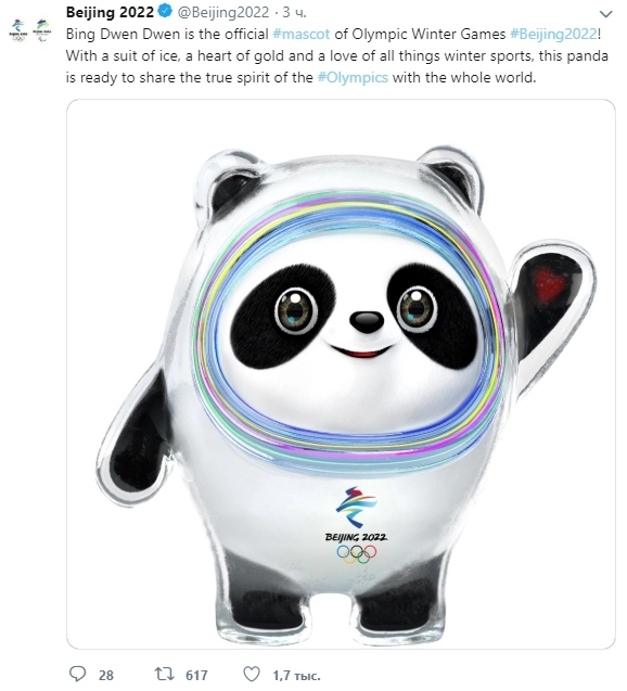 Оргкомитет зимней Олимпиады 2022 года, которая пройдет в Пекине, представил официальный талисман игр — панду Бин Двэнь Двэнь.