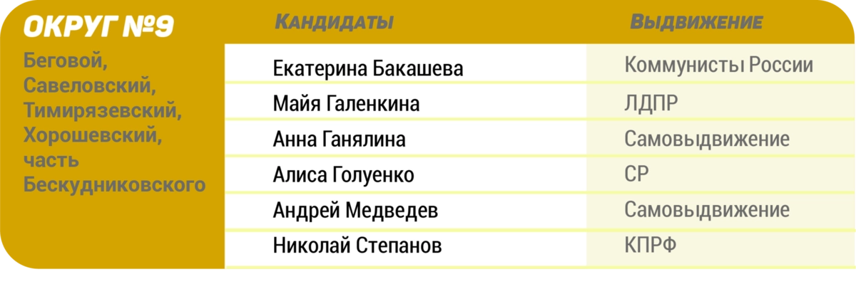 Тест на внимательность: мундеп округа Тимирязевский Ганялина участвует в выборах, а мундеп округа Тимирязевский Галямина — нет.