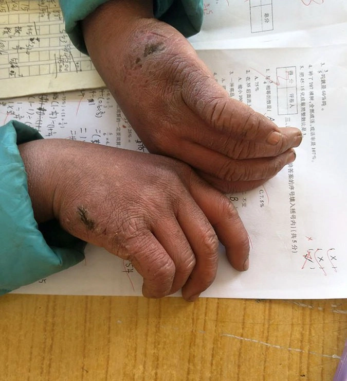 Этому мальчику всего 8 лет, он живёт в маленьком посёлке Синьцзе, что в китайской провинции Юньнань. Каждый день он вынужден преодолевать расстояние в почти 5 км, чтобы добраться до своей школы. В тот день неожиданно резко похолодало, температура опустилась до -9 °C, у юного школьника не было одежды, но это его не остановило. Он должен был сдать экзаменационный тест, и он сдал его, прославившись на весь мир.