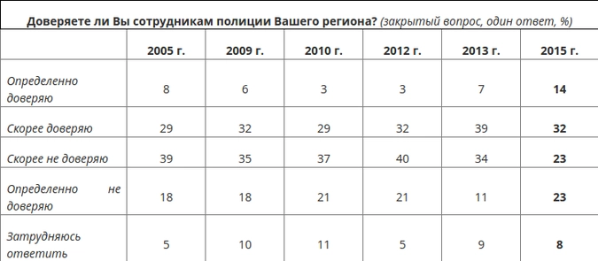 Есть конкретные подвижки в полиции: к примеру, мы гораздо реже слышим о скандалах коррупционного характера, происходит меньше преступлений, которые были характерны для полиции и милиции начала нулевых. Руководство МВД, например, минимизировало контакты ГАИ с водителями на дорогах, прибегнув к видеокамерам. Да и вообще, система развивается. В этом отношении определенное доверие есть.