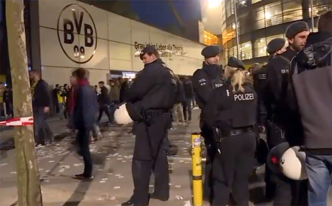 Взрывы перед автобусом с футболистами «Боруссии» произошли перед матчем ¼ финала Лиги чемпионов с «Монако». Пострадал защитник «Боруссии» Марк Бартра, который был госпитализирован.