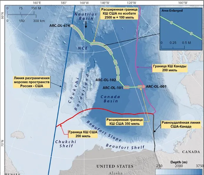 Вашингтон считает, что интересы Москвы в данном случае никак не затрагиваются, а вот с Оттавой и Токио (шельф в районе Марианских островов) придётся договариваться. Например, в море Бофорта американцы провели границу с канадцами по методу равноудалённой линии, то есть как бы «поровну», в то время как команда кленовых листьев придерживается меридиана 141° западной долготы. В результате образовался спорный участок.