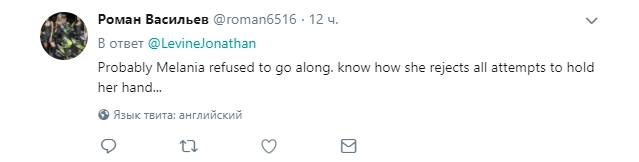 «Может быть, Мелания отказалась идти [вместе с ним]? Знаете же, как она отвергает все попытки взять ее за руку».