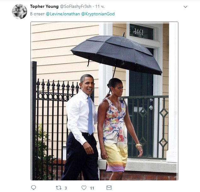 Другие вспомнили, как галантно Барак Обама укрывал жену от дождя.