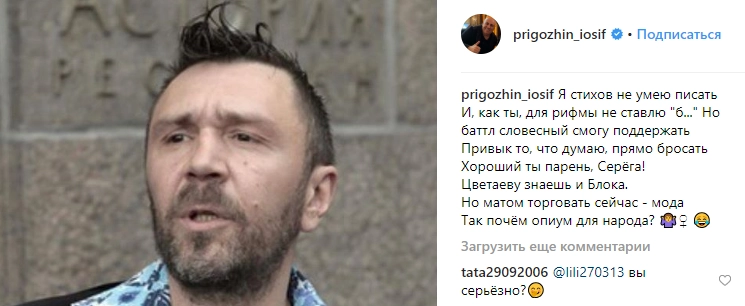 Пригожин ответил на стихотворение музыканта своим поэтическим опусом, в котором признался, что стихов писать не умеет, но готов поддержать «баттл словесный».