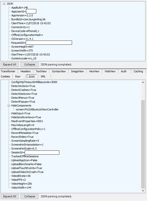 «Что это такое? А это запрос от приложения к серверу (сверху) с инфой вроде его версии, модели телефона, времени запуска, разрешения дисплея. Вроде бы все окей, да? Но! В ответ телефону прилетает информация (снизу) о том, как записывать видео с экрана», — продолжил автор поста.