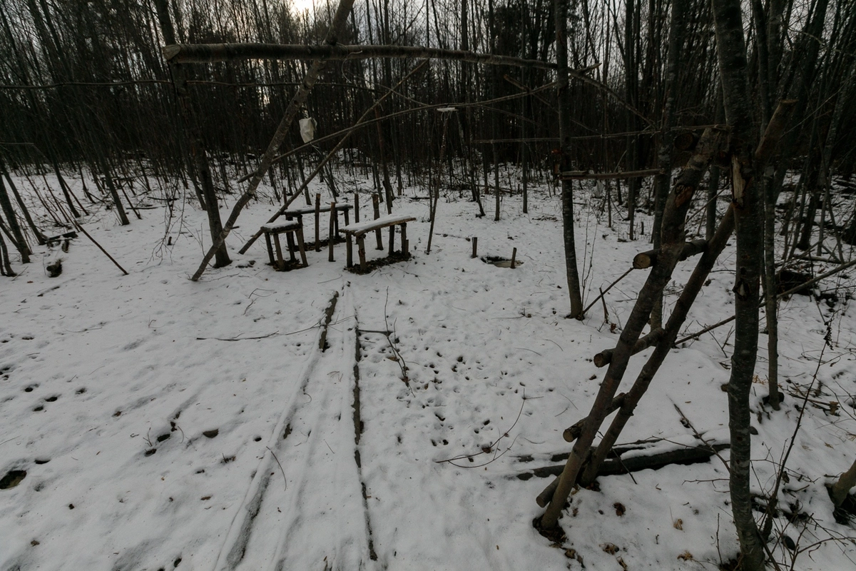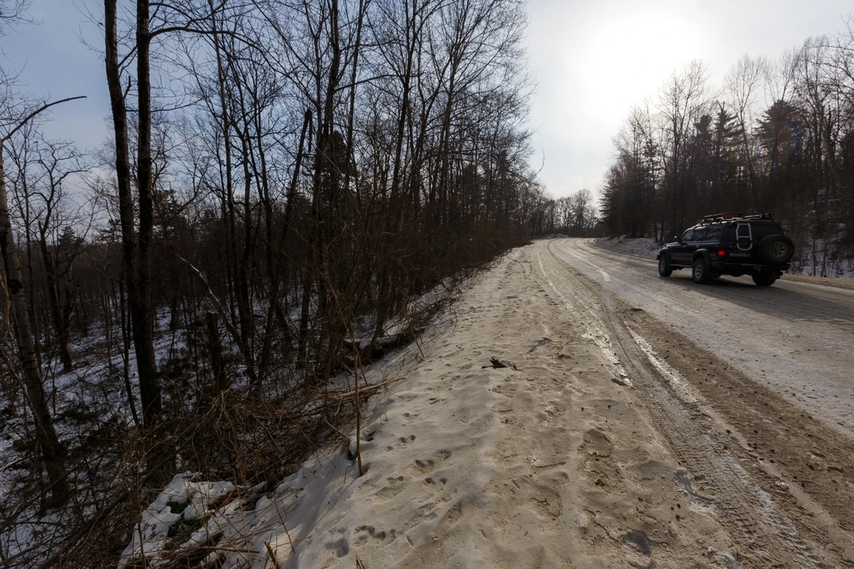 От Вострецово до Измайлихи, несмотря на небольшое расстояние в 80 километров, ехать долго. Всё из-за убитых дорог. Мы проезжаем брошенный лагерь шишкарей — на это указывает куча шишечной лузги. Лагерь кто-то обустраивал добротно: вот здесь было костровище и столовая, вот тут нары, здесь принимали контрастный душ, а здесь склад. От лагеря вглубь тайги уходит старая лесовозная дорога. Лес брали давно, вдоль дороги видны поросшие мхом старые пни.