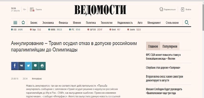В четверг российские СМИ написали о том, что кандидат в президенты США от республиканцев Дональд Трамп назвал представителей Международного паралимпийского комитета и Спортивного арбитражного суда «кретинами» и «настоящими инвалидами». Политик, уверяли нас журналисты, разразился бранью, поскольку чиновники не разрешили спортсменам из РФ участвовать в Паралимпиаде-2016 в Рио-де-Жанейро.