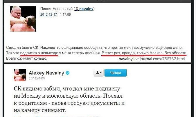 Впрочем, очень скоро выяснилось, что и Навальный, и его адвокат лгут. В пресс-службе Следственного комитета журналистам уже заявляли, что для получения разрешения на выезд из столицы обвиняемый должен обращаться к следователю. Позже блогеры обнаружили, что и сам Навальный раньше упоминал об этом, отмечая, что его подписка распространяется лишь на Москву. Вот только в новых обстоятельствах, видимо, предпочел забыть.