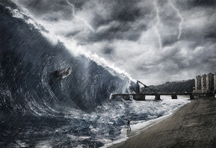 Землетрясения и извержения вулканов, происходящие около большой воды или под водой, как правило, вызывают другую напасть — огромные волны цунами. В нашу геологическую эпоху это самое разрушительное и смертоносное стихийное бедствие на планете. Так, от цунами, вызванного землетрясением в Индийском океане у берегов острова Суматра в декабре 2004 года, погибли 225—300 тысяч человек, причем жертвы были даже на Африканском континенте. Ударам цунами подвержены практически все побережья океанов и даже внутренних морей, за исключением, пожалуй, Арктики и Антарктиды. В случае каких-либо значимых геологических событий цунами вполне могут оказаться той силой, которая будет способна нанести тяжелейший удар человеческой цивилизации.