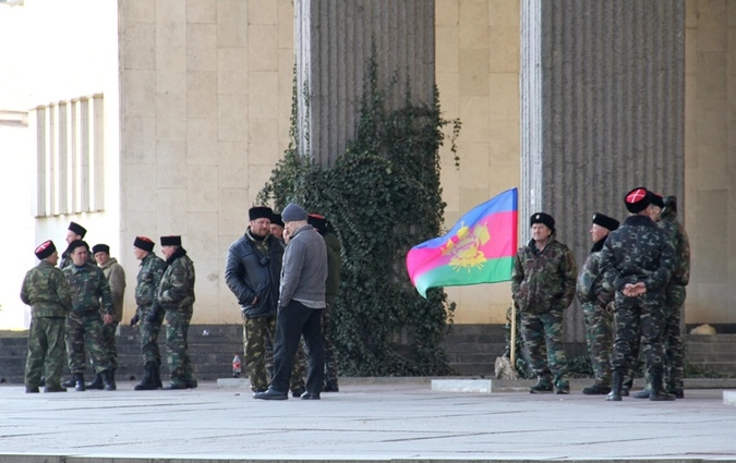 У административного центра Симферополя, как и все минувшие дни кучкуется множество людей в форме самых разных цветов и фасонов, с опознавательными знаками (казачьих войск, например) и без оных. Вместе с тем настроение на улицах крымской столицы все эти дни было солнечным подстать погоде…