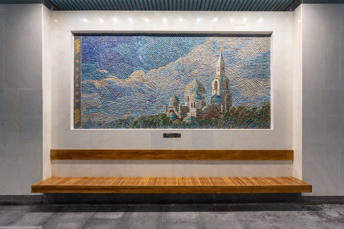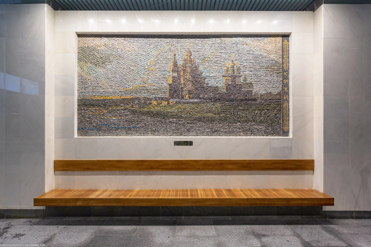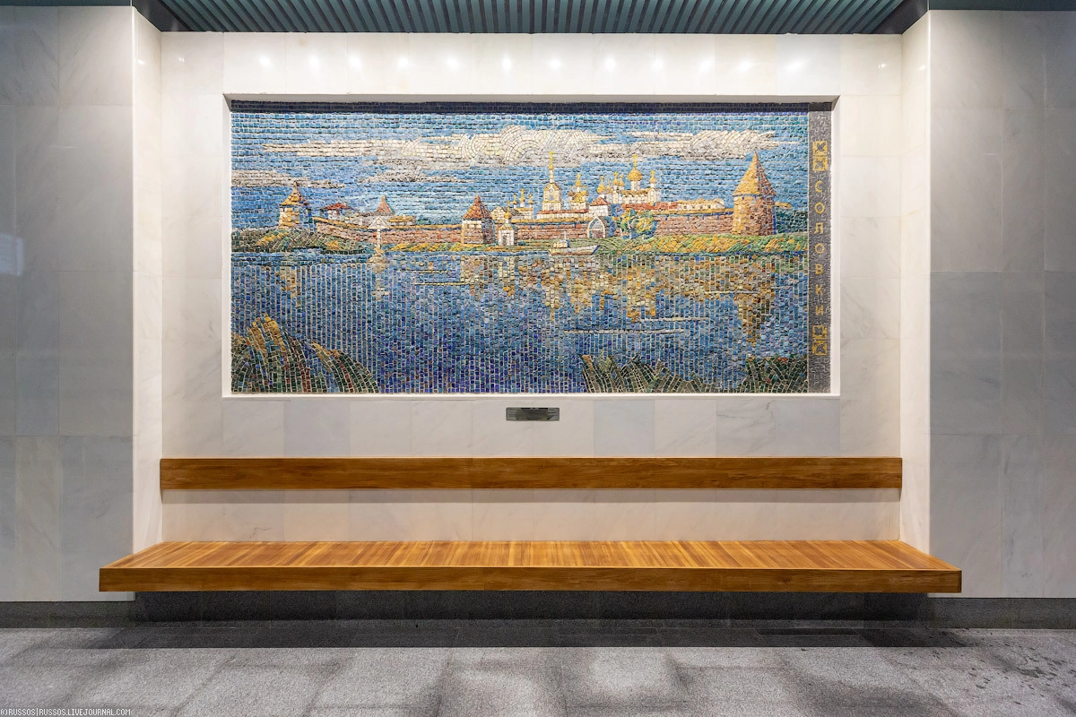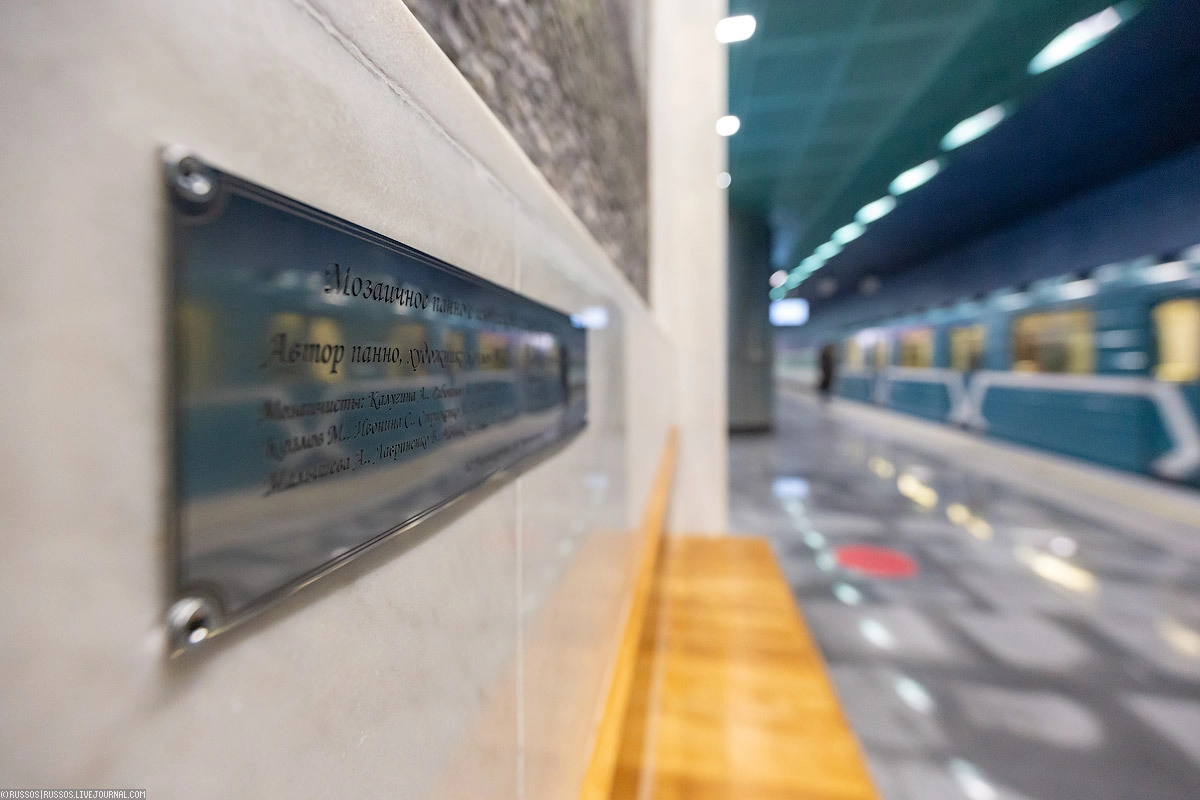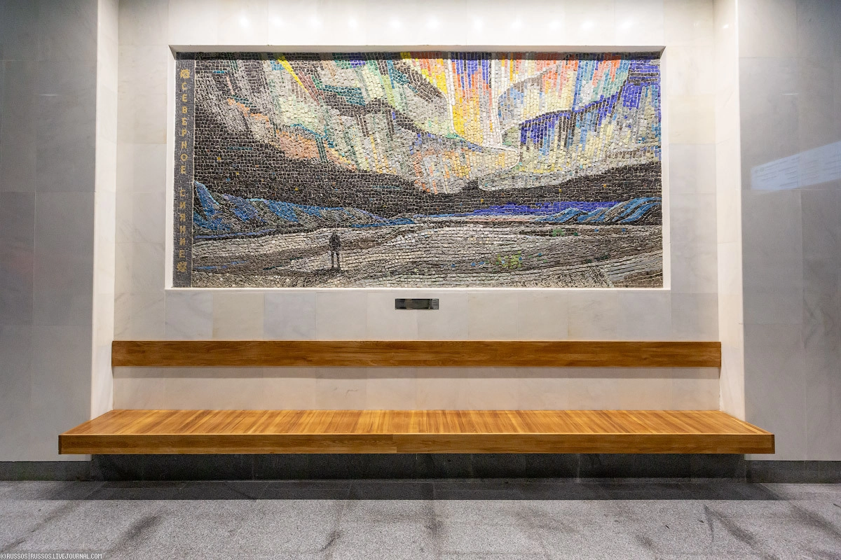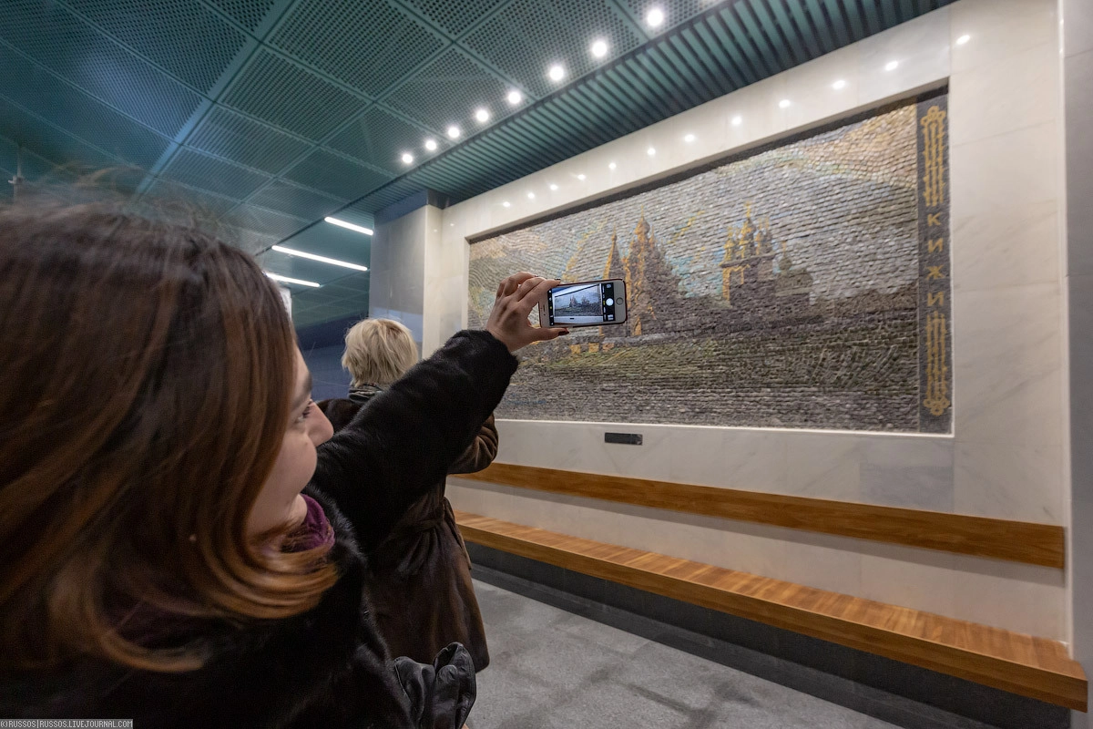 Первые пассажиры фотографируют панно. Они притягивают взгляд.