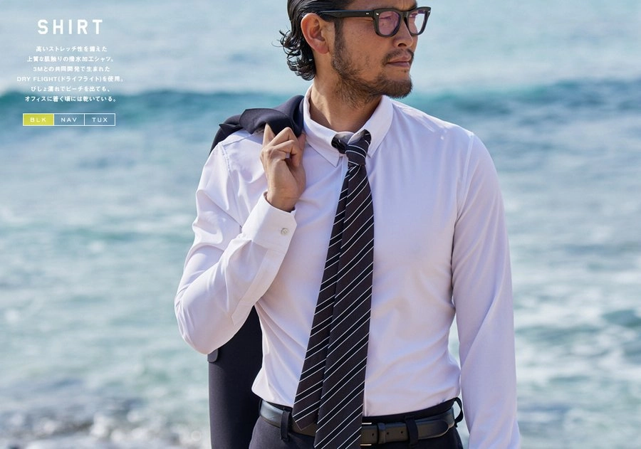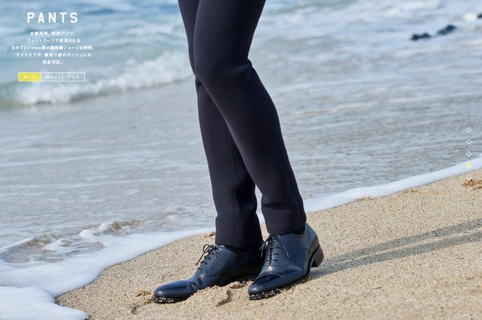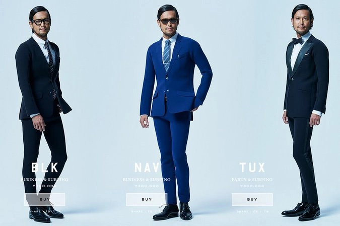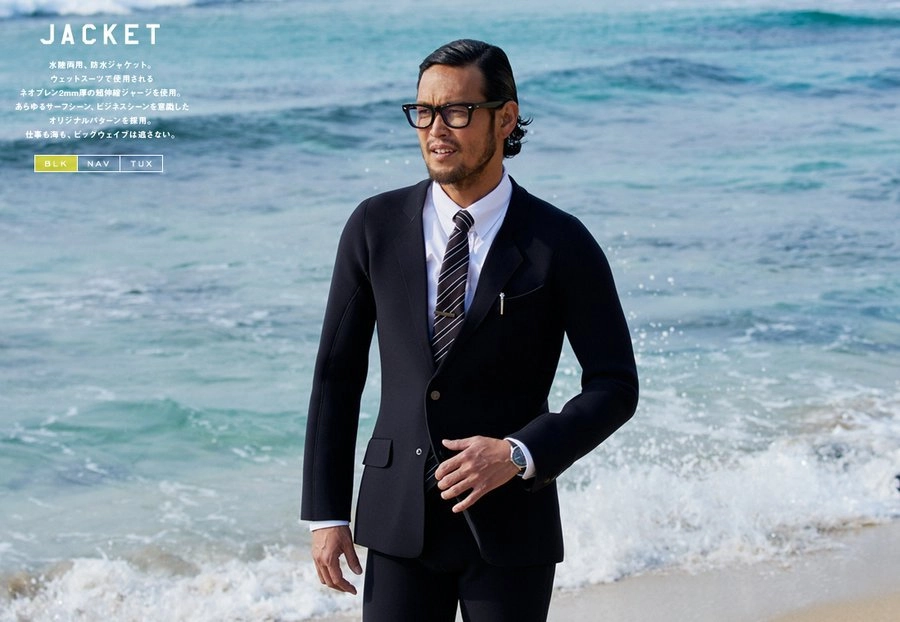 Серия «Настоящий гидрокостюм» это три вариации мужских костюмов: «Офис смарт», «Неформальная пятница» и «Смокинг для вечеринок». Стоимость на каждый из них — от 300 тыс йен (около $2500)