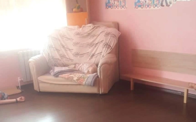 Детей в комнате находилось не меньше 12. Они лежали в детских кроватках по двое, валетом. Дети были связаны пеленками — в большие узлы на ногах и обмотаны за спину. В комнате было душно, сплит-системы не работали, просто были открыты окна, — объяснила няня.