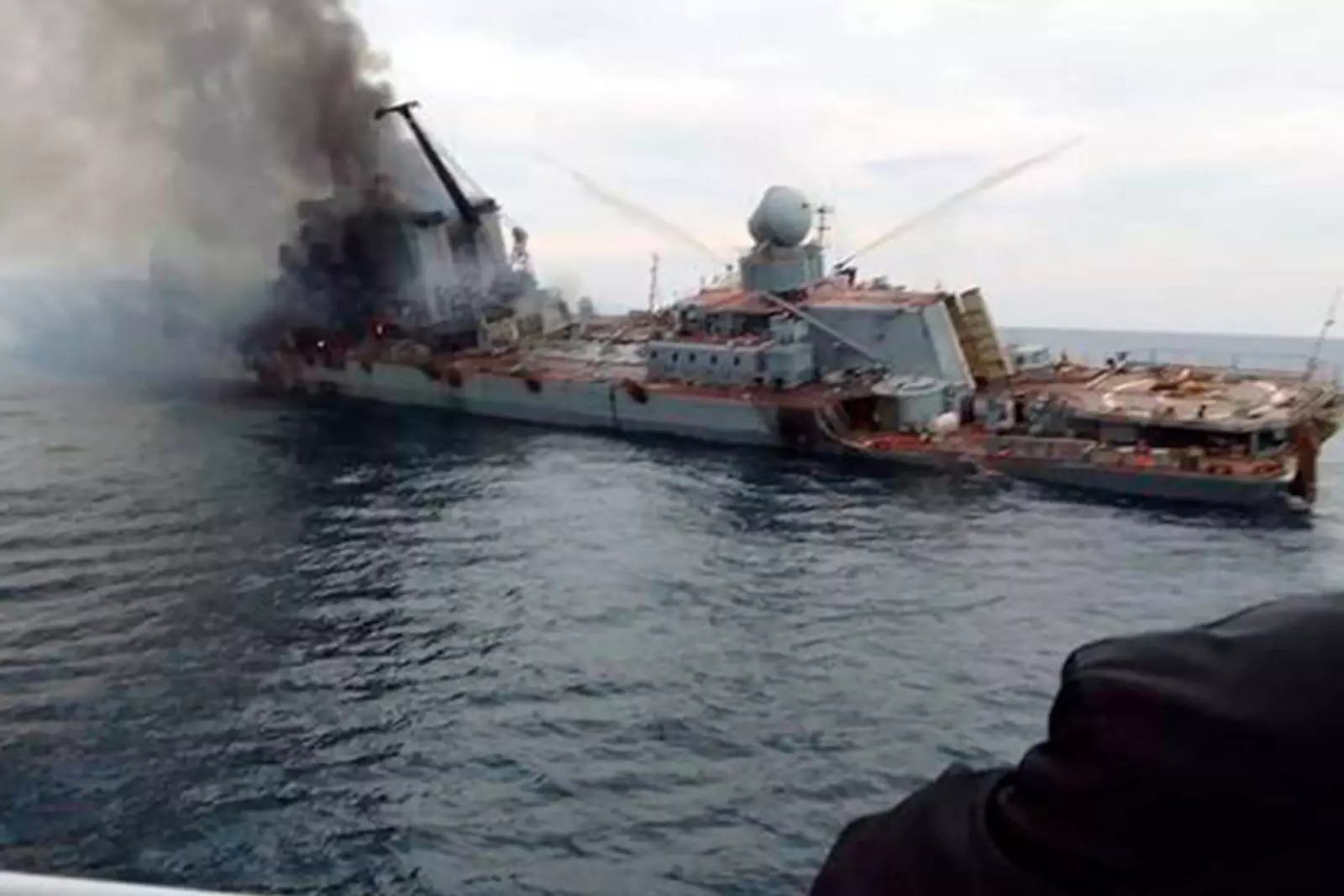 14 апреля российское военное ведомство сообщило, что на крейсере «Москва» случился пожар, из-за чего сдетонировал боезапас. Крейсер сохранил плавучесть, и его стали буксировать в порт, но он затонул, по версии Минобороны РФ, из-за шторма.