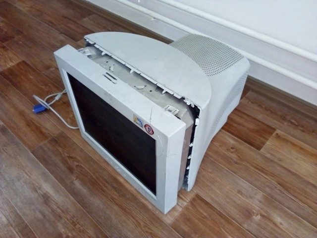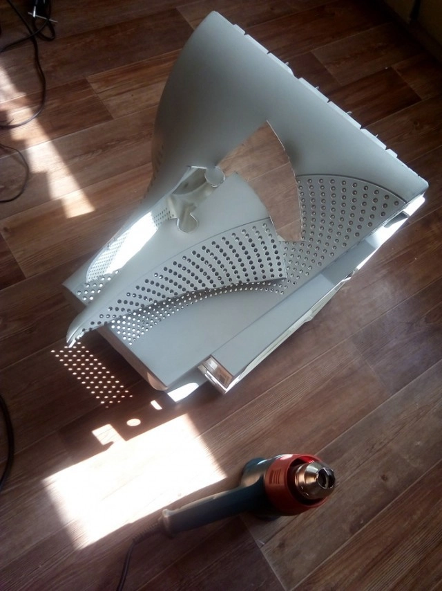 Для начала парень взял монитор и вырезал из корпуса все необходимые детали