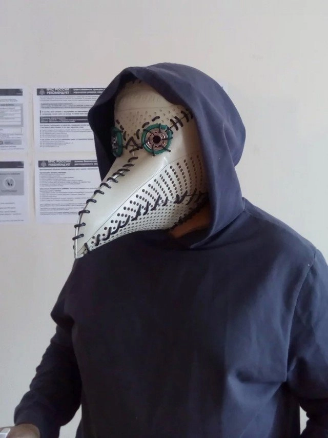 Сергей сделал маску, которая по дизайну очень напоминает маску чумного доктора, материалом для необычного изделия выступил корпус от старого электронно-лучевого монитора.