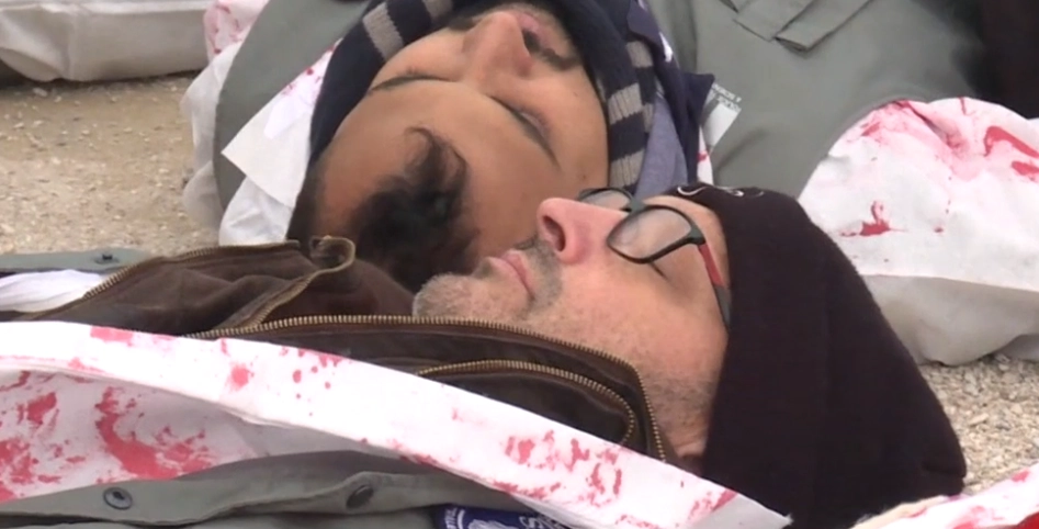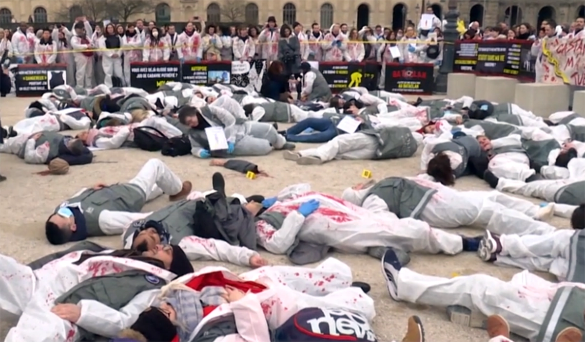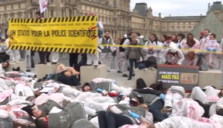 Протестующие криминалисты изобразили жертв побоища во дворе Лувра