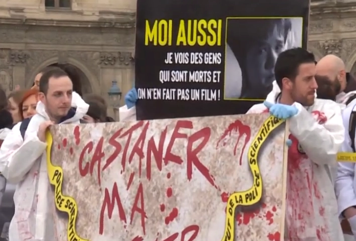 По данным Euronews, в акции протеста участвовали две сотни судмедэкспертов. Они недовольны тем, что считаются во Франции гражданским персоналом и, следовательно, могут претендовать на меньшие зарплаты и социальные льготы, чем патрульные или оперативники полиции.