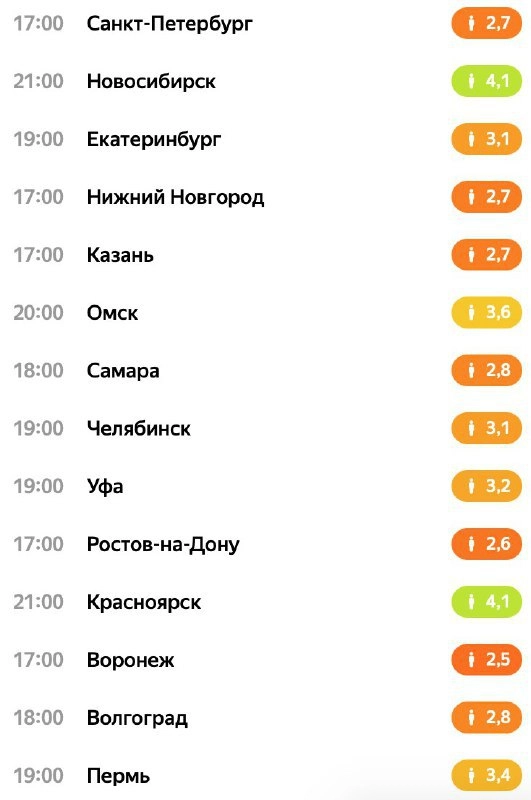 Есть и другие свидетельства тому, что режим самоизоляции начинает утомлять россиян. Начиная примерно с 8—9 апреля индекс самоизоляции, измеряемый сервисами «Яндекса» и указывающий на число людей на улицах Москвы и других крупных российских городов, постепенно снижается. Если на прошлой неделе в среднем этот индекс составлял 3—4 балла (людей на улицах было немного), то теперь его среднее значение колеблется в районе 2—3 баллов.