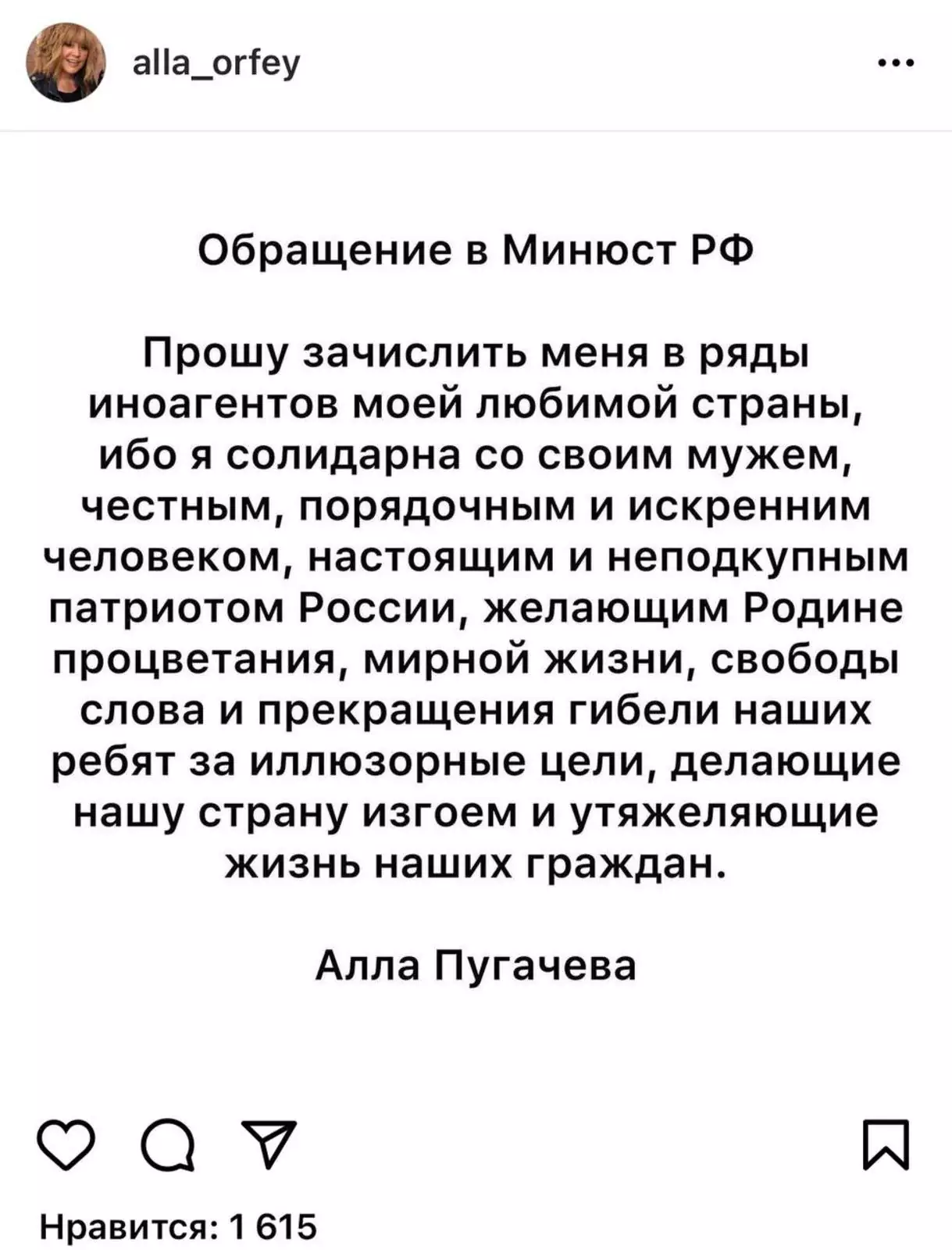 И вот сегодня Пугачева просит признать ее иноагентом вслед за мужем — «честным, порядочным и неподкупным человеком».