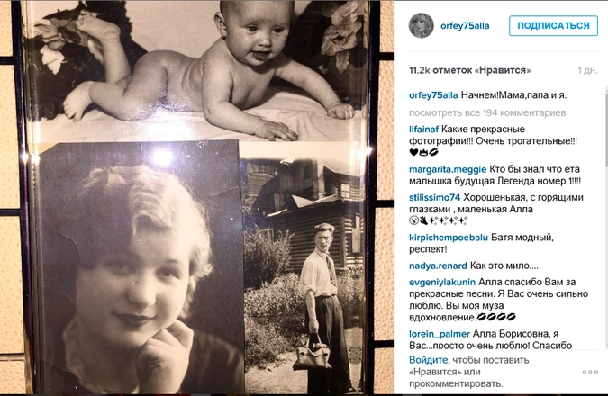 Аккаунт легендарной исполнительницы называется orfey75alla. На странице примадонны всего шесть постов, однако у нее уже более 50 тысяч подписчиков. Через Instagram Пугачева делится с поклонниками подробностями своих будней.