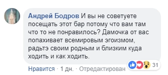 В комментариях интернет-пользователи разделились на два лагеря: тех, кто поддержал Кочур в ее патриотизме, и тех, кто не увидел в действиях работников бара ничего крамольного.