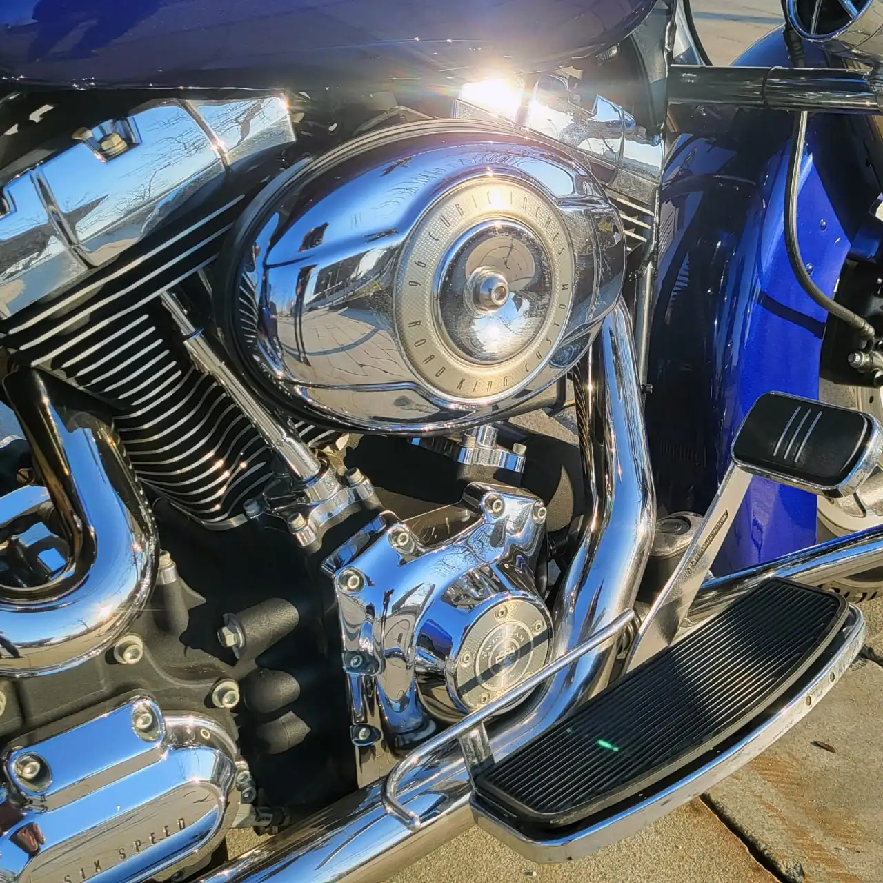 Вообще, «Кинг» можно быстро переделать, да так, что хрен узнаешь. Например, поставить «турпак» (здоровенный центральный кофр с пассажирским диваном) и бэтвинг (характерный обтекатель, напоминающий крыло летучей мыши). Тогда получится почти Electra Glide. На выбор сотни стекол, сидений, глушителей, хромированных крышечек и рычажков. Только бабки выкладывай.