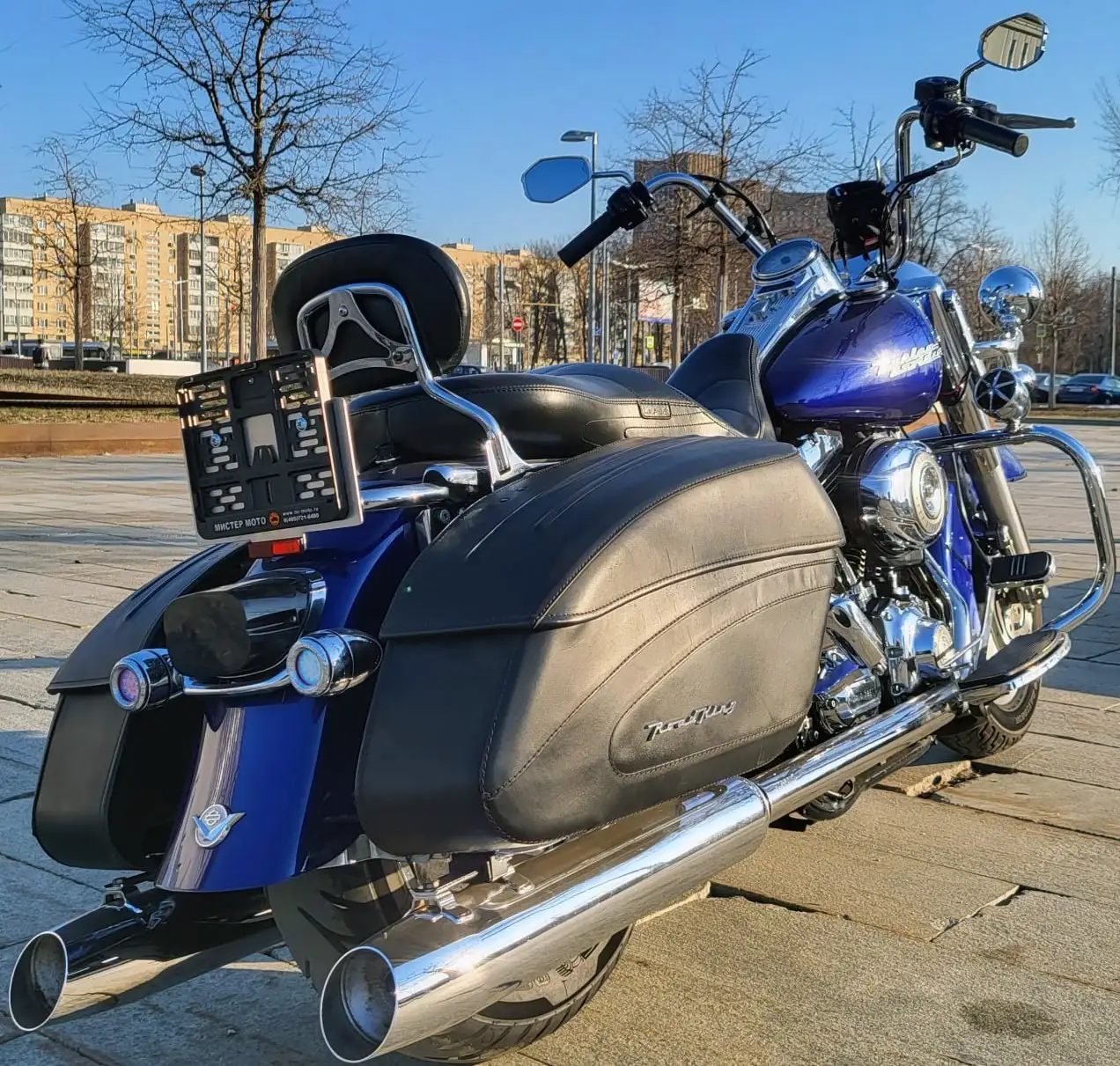 Посадка очень удобная. Но руль пенсионерский. И выглядит, и ощущается как унылое говно. Под замену первым делом. Вторым делом я бы заменил кожаные кофры на что-то жесткое, более подходящее бэггеру.