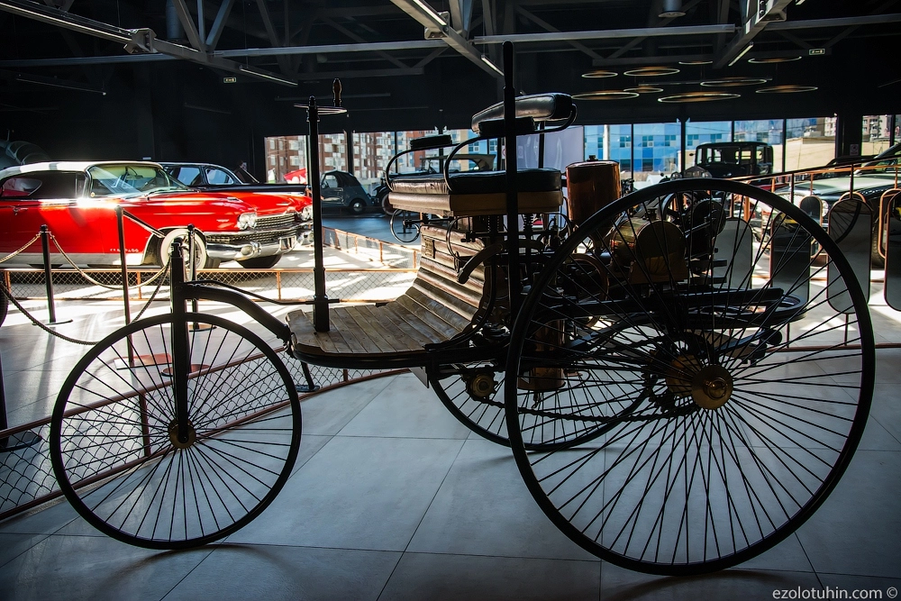 Насколько крут и уникален этот экспонат, даже трудно описать. Benz Patent-Motorwagen и это первый в мире автомобиль с двигателем внутреннего сгорания. Выглядит совсем не так как современные авто, но именно он был первым. С 1886 по 1893 годы было выпущено всего чуть больше двух десятков таких машин!