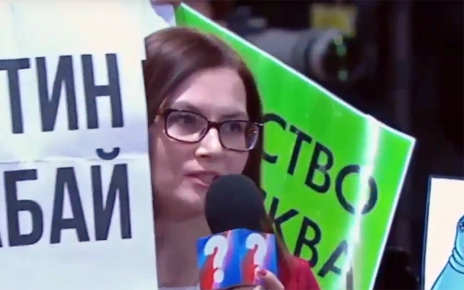 Путин предложил журналисту сделать вопрос более острым: «Чтобы обострить еще ваш вопрос, я видел там девушка плакат поднимала, на котором написано: „Путин, бай-бай“. Давайте заострим».