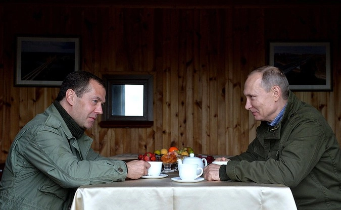 Президент России Владимир Путин и премьер Дмитрий Медведев после посещения торжеств по случаю Дня города в Москве отправились в Новгородскую область, где посетили памятник новгородского каменного зодчества – Церковь Николы на Липне на острове Липно в дельте реки Мсты.
