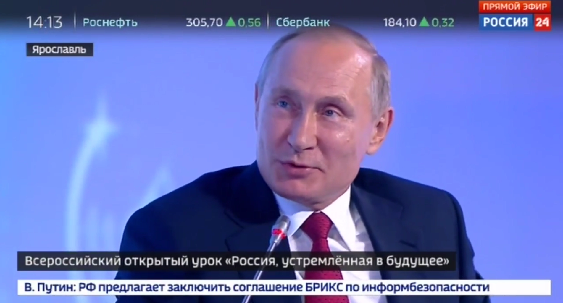 Президент России Владимир Путин побывал на форуме профессиональной навигации «ПроеКТОриЯ», где в рамках открытого урока пообщался с принимающими участие в мероприятии старшеклассниками.