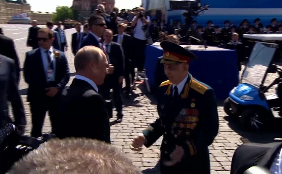 Президент пожал фронтовику руку и пригласил вместе пройти в Александровский сад. Журналист кремлевского пула газеты «Комсомольская правда» Дмитрий Смирнов сообщил об этом в Twitter.