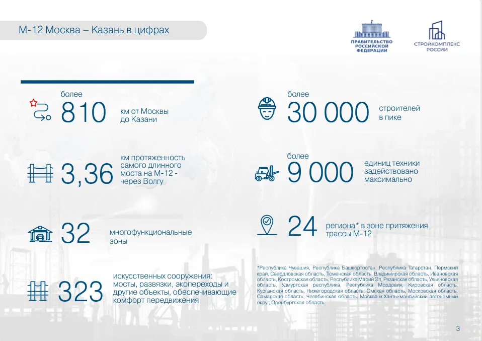 По данным вице-премьера РФ Марата Хуснуллина, благодаря транспортной магистрали М-12 грузопоток между Москвой и Уралом увеличится до 50 миллионов тонн.