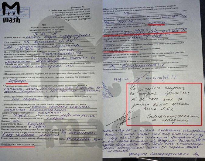 Вадим Кашин утверждал, что не употреблял алкоголь накануне, а только 15 марта за ужином выпил бокал красного вина.