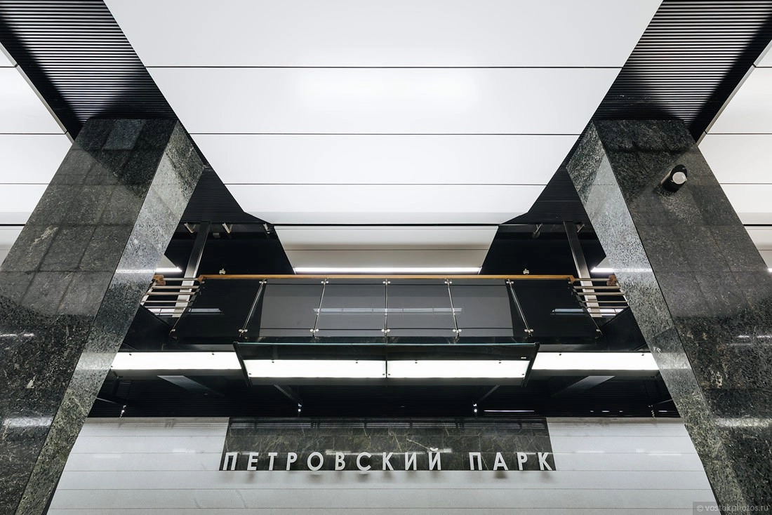 Рядом со станцией находится Петровский путевой дворец XVIII века, поэтому архитекторы решили вписать его в дизайн.