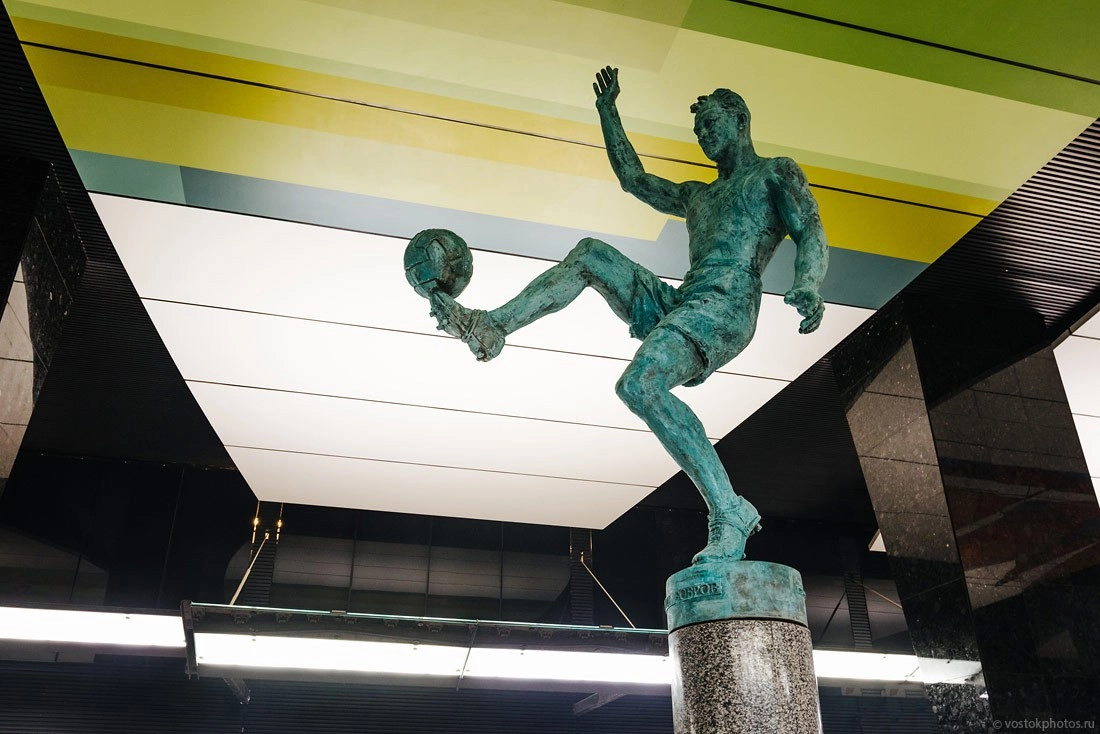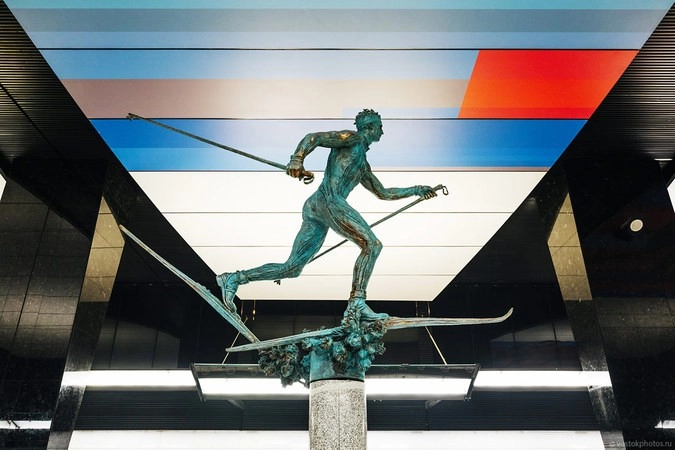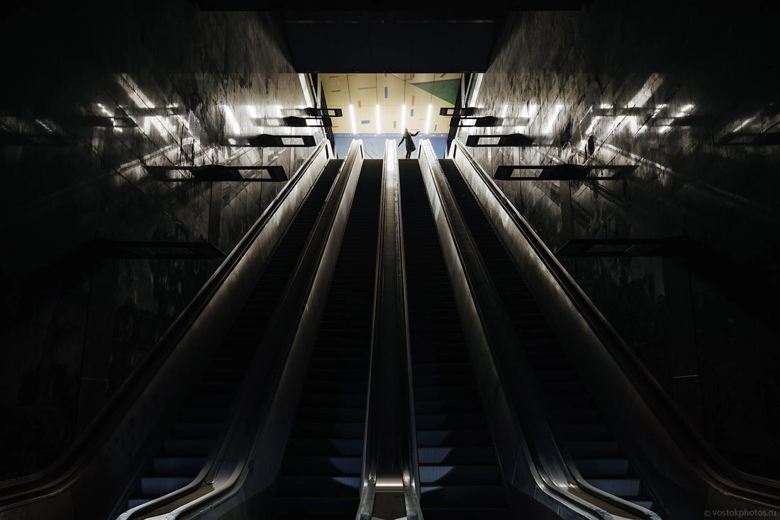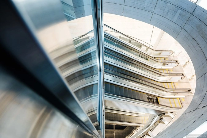 Главное отличие «ЦСКА» от всех станций московской подземки — так это мудреный эскалаторный спуск на платформу. Представьте, что вы находитесь на 4 этаже торгового центра, и вам нужно выйти на улицу. Для этого нужно прокатиться три раза на эскалаторе, переходя с одного на другой.